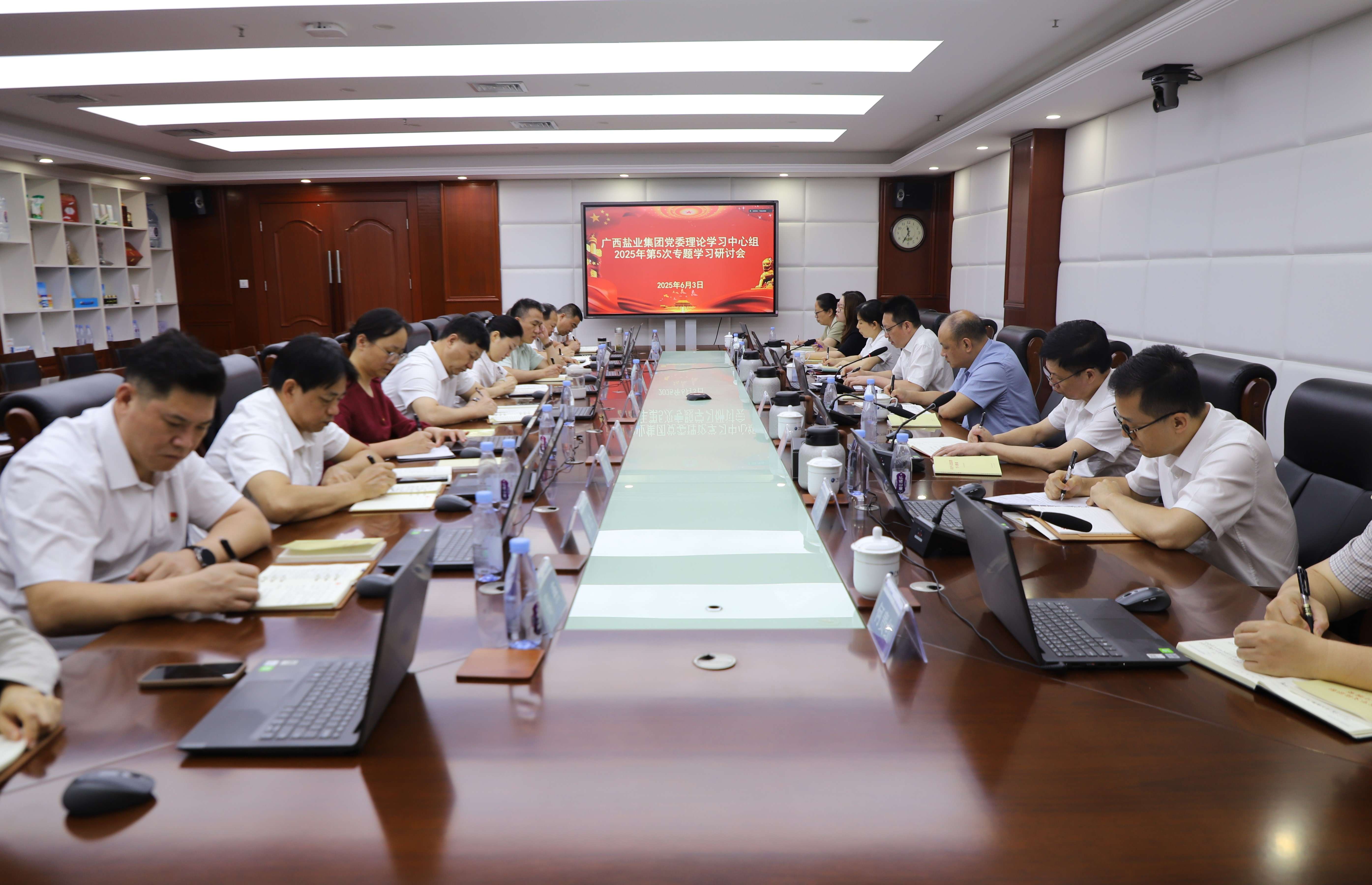 6月3日,广西盐业集团党委召开理论学习中心组2025年第五次专题学习会。集团公司党委书记、董事长邱潮涌主持会议并谈学习体会,领导班子成员结合会议主题谈学习体会。