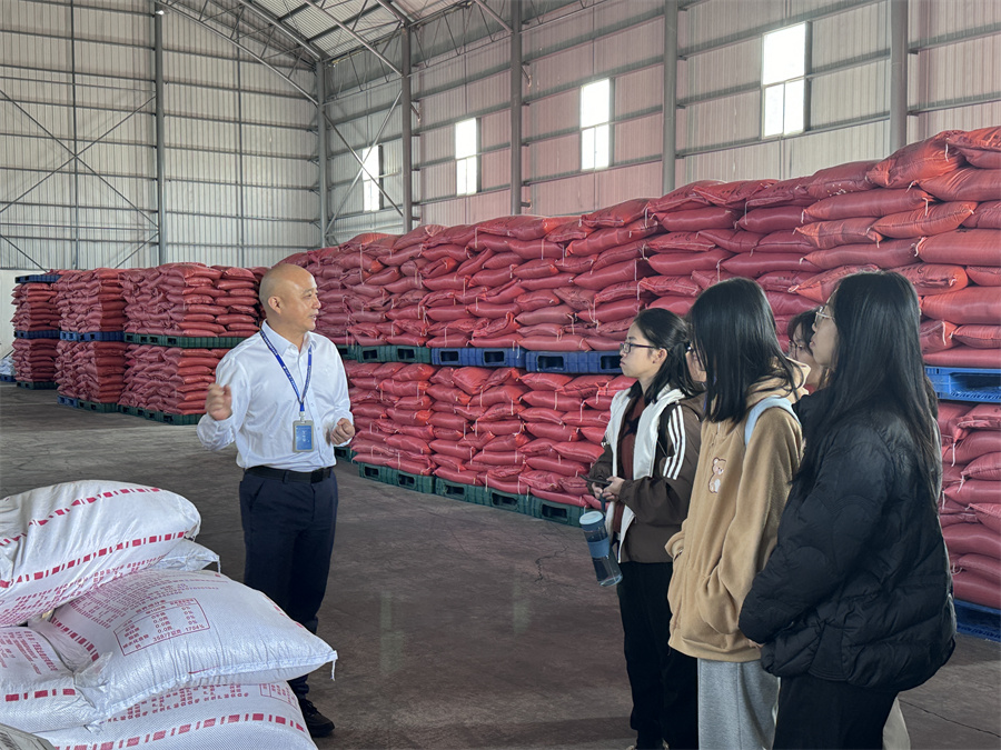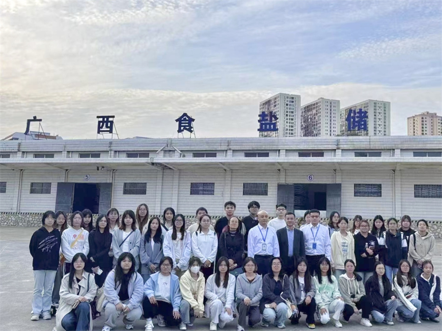 本次研学地点设在集团所属南宁分公司。南宁分公司党支部书记、总经理范高敏对各位师生的到来表示热烈欢迎,并为大家上了一堂精彩的食盐知识课,重点讲述了国家食盐相关政策,并介绍集团所推出的雪花盐、低钠盐、零添加系列盐品等主推产品。随后,范高敏带领大家前往广西食盐储备中心进行参观。他表示,广西盐业集团作为国家食盐储备的重要基地,承担着保障食盐安全的重大社会责任,多年来为广大人民群众提供了坚实保障,并向大家展示了储备中心的先进设施和仓储管理场景,大家表示出极大兴趣,积极提问互动。