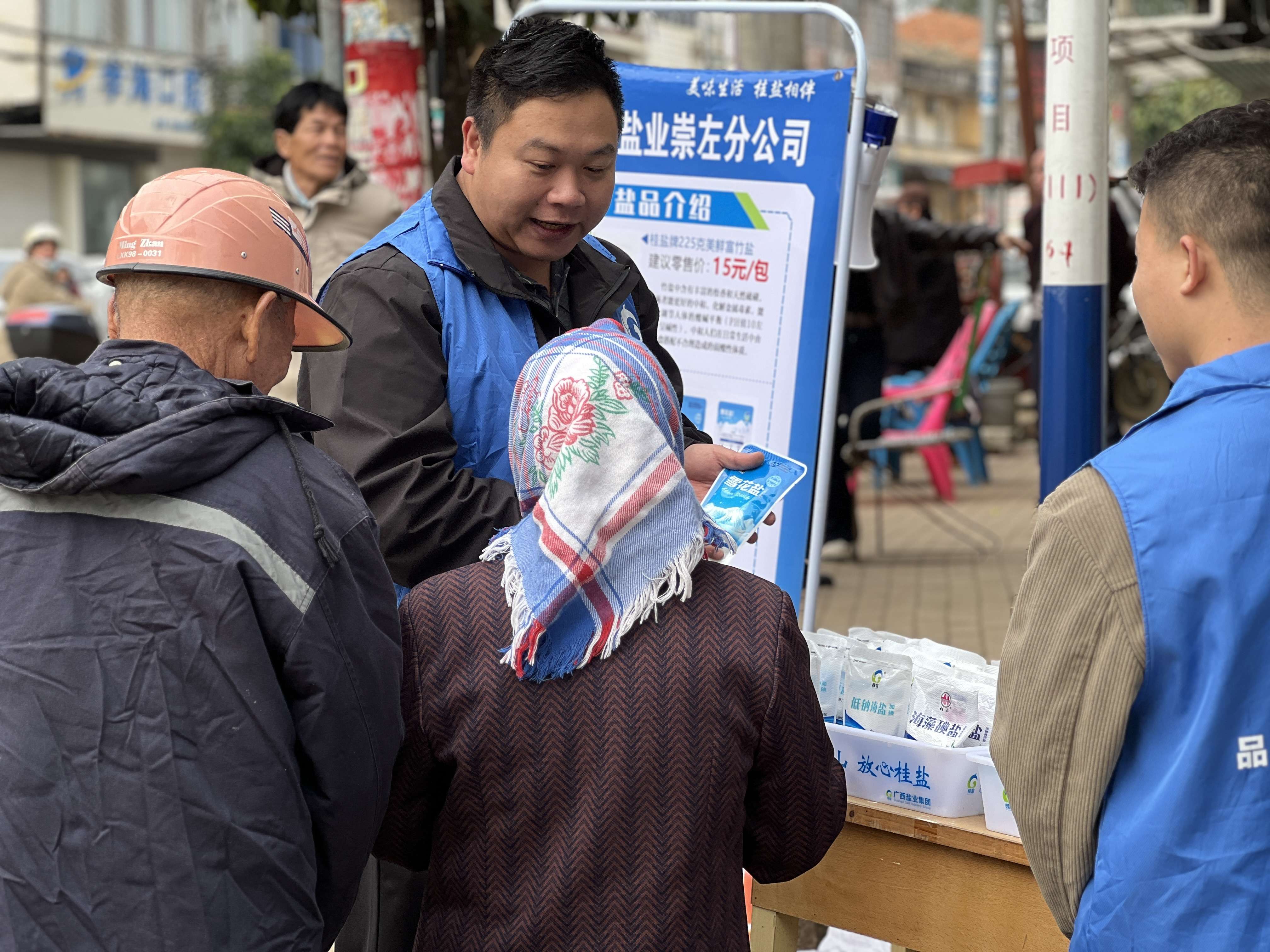 抢花炮决赛后,广西盐业集团崇左分公司巧妙地在巡游的必经之路上摆摊设点开展地推活动,借着热闹的人流,让四方闻讯而来的民众在沉浸式体验民族传统节日魅力的同时,还能深入了解健康用盐知识,进一步了解“桂盐”“桂山”品牌。