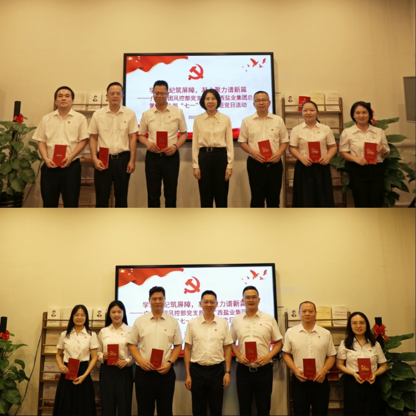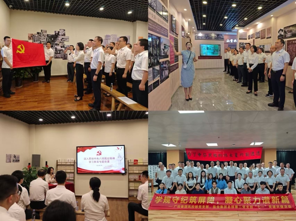 7月12日,广投集团风控部党支部与广西盐业集团第二党支部联合开展“七一”主题党日活动暨深入贯彻中央八项规定精神学习教育专题党课。集团党委委员、副总经理彭湖,两个党支部约40名党员参加活动。